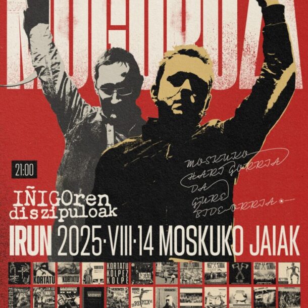 Fermin Muguruza actuará esta noche de forma gratuita en la plaza Urdanibia de Irun, en las fiestas de su barrio natal, Mosku, en un evento que se prevé multitudinario. Tanto es así que el Ayuntamiento de la localidad ha difundido un mapa con información práctica para todos aquellos que se acerquen al municipio desde otros enclaves de Gipuzkoa y, por supuesto, para los propios irundarras. El espectáculo arrancará a las 21.00 horas con la actuación de Iñigoren Dizipuloak, banda homenaje a Iñigo Muguruza, que servirá de antesala al concierto principal, enmarcado en una gira internacional por el 40º aniversario del inicio de la carrera de Fermin con Kortatu.