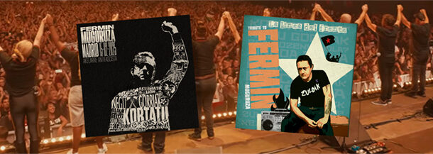 Ilustración para el vinilo en directo conmemorativo de los 40 años de carrera de Fermin Muguruza. La pieza retrata al músico como un icono construido a partir de su propio legado: nombres, símbolos y luchas que conforman su identidad artística. Inspirada en el cartelismo político y el grabado contemporáneo, la obra sintetiza la potencia, diversidad y compromiso social que definen su trayectoria. Más que un retrato, la ilustración funciona como una cartografía emocional y política del artista; un collage tipográfico que condensa cuatro décadas de creación, militancia y mestizaje sonoro. La obra busca capturar la energía cruda del directo y, al mismo tiempo, rendir homenaje a un músico cuya voz ha atravesado fronteras culturales y geográficas.