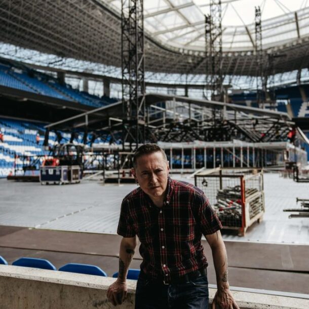 El montaje del escenario donde actuará Fermin Muguruza este sábado a las 21.00 horas en Anoeta ya está en marcha.
