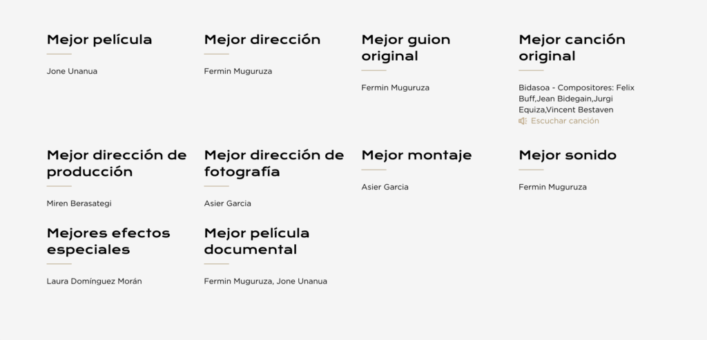 Hace unas semanas nos confirmaron 2 candidaturas, probablemente las susceptibles de ser nominadas: mejor película documental y mejor canción original «Bidasoa» de Willis Drummond, pero finalmente son 10 candidaturas: https://www.premiosgoya.com/pelicula/bidasoa-2018-2023