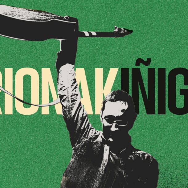 Intensidad, sudor, ritmos acariciados por diferentes vientos, pasión, estribillos gloriosos junto a proclamas de conciencia social y política… Y muchas canciones, bueno, ya más himnos que canciones de la mano de Fermín Muguruza, uno de los artistas claves que ha amamantado Euskadi en el último medio siglo de sonidos y otras artes enfangadas en la cultura popular, tanto en solitario como al frente de Negu Gorriak y Kortatu. Eso es Akelarre Antifascista (Talka Records), el disco que el irundarra y su banda grabaron el pasado mes de febrero, el día 15, en Madrid, como legado de su gira de despedida de los grandes escenarios y que se promociona en la Azoka.